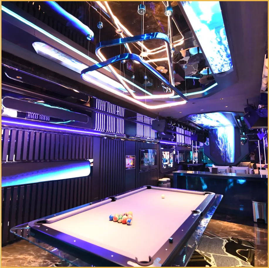 The interior design of Palace 8 Marina is avant-garde, novel and yet luxurious, elegant and classy, leaving a royal charm. The venue is equipped a wide range of entertainment facilities such as luxurious KTV rooms with unique decorations, laser light Hi-Fi with the latest technology, private rooms that are Wi-Fi ready, embracing the modern internet bar movement. A large floor area accompanied by state-of-the-finest-art technology and facilities makes Palace 8 Marina an all-purpose entertainment venue that is set to provide you with a five star prestigious experience as well as a cozy homecoming feel.